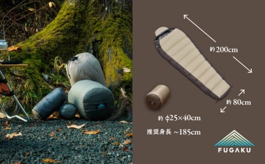 - 【FUGAKU】MUMMY SLEEPING BAG 450g マミー型寝袋 ダウンシュラフ ベージュ※着日指定不可 ふるさと納税 寝具 キャンプ アウトドア 寝袋 羽毛 山梨県 道志村 送料無料 DSI062