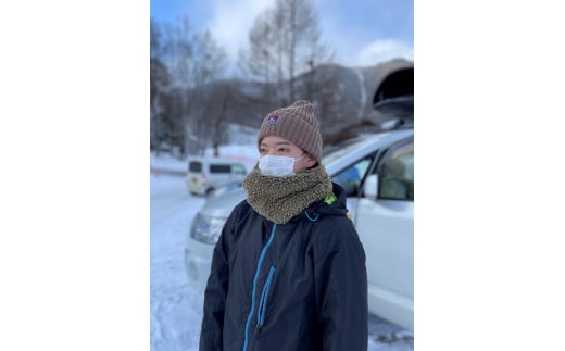 - 【G0510】赤外線を吸収して暖かくなる難燃ボアのスライバーニットネックウォーマー:配送情報備考 キャメル