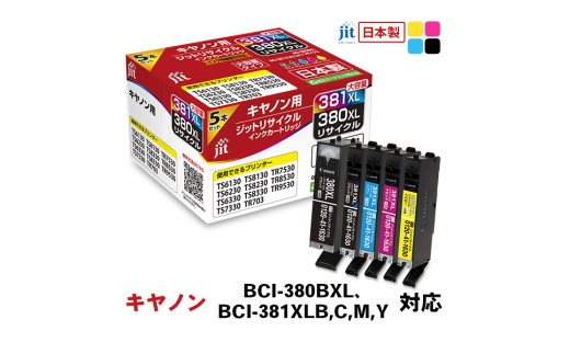 - ジット 日本製インクカートリッジ BCI-380BXL、BCI-381XLB,C,M,Y用リサイクルインクカートリッジ JIT-C3803815PXL (5色セット) ALPBN096