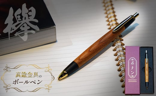 - 欅 真鍮金具のボールペン 1本 | ボールペン 文具 文房具 筆記用具 ギフト 贈答用 プレゼント 木製 入学 高級 高級文具 工芸品 手作り 長野県 松本市 信州産