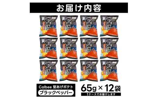 堅あげポテト カルビー 「ブラックペッパー」 ポテトチップス 12袋(65g×12袋)1ケース 総計780g【ポテチ Calbee かたあげポテト ブラック ペッパー かたあげ セット 菓子 ポテト チップス スナック おやつ じゃがいも ジャガイモ お取り寄せ まとめ買い 詰め合わせ 詰合せ 人気 送料無料】 (BG031)