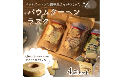 - 機械屋さんの バウムクーヘンラスク 4袋 ラスク 洋菓子 スイーツ バームクーヘン 焼菓子 お菓子 セット お茶 ガトーピレネー ギフト プレゼント 贈答 対応可能 オンライン決済限定 藤枝市 静岡県