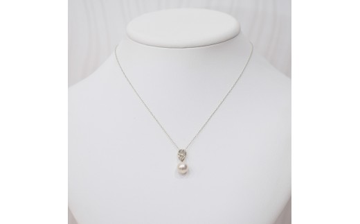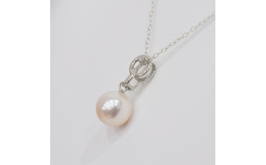 S101-488_あこや真珠 天草 ネックレス ペンダント ダイヤモンド 0.01ct 8mm - 8.5mm ホワイトピンク 真珠 K18 クロス K18WG