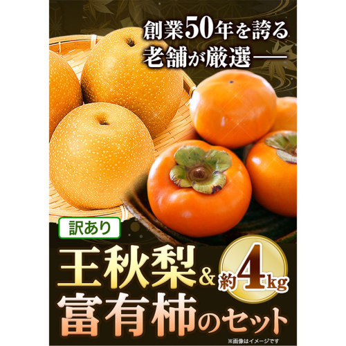 【2026年先行予約】訳あり 王秋梨と富有柿のセット 4kg 高間商店《2026年11月上旬-12月下旬頃出荷》鳥取県 八頭町 送料無料 梨 なし ナシ 柿 かき カキ 王秋梨 富有柿 果物 フルーツ ギフト 贈り物