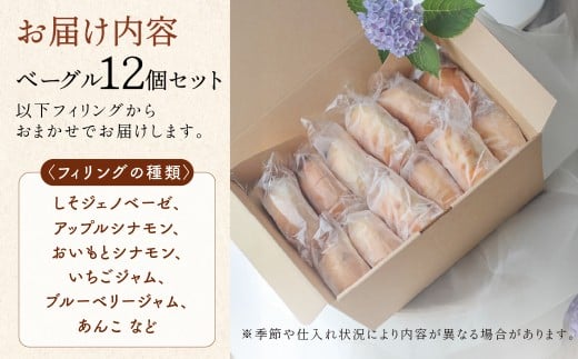 - 地元素材にこだわった 手作りベーグル おまかせ8個 / 12個セット ベーグル フィリング アップルシナモン おいも シナモン いちごジャム ブルーベリージャム あんこ 国産 手造り もちもち