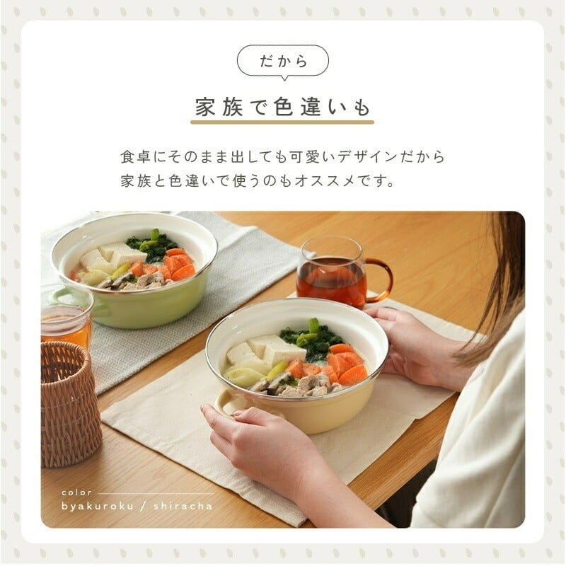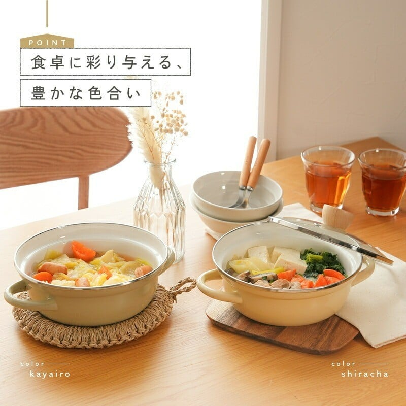 - ホーロー 両手鍋 20cm 鍋 ホーロー鍋 【カラー選択可】〈 アットライズ 〉卓上鍋 一人鍋 1人用 ひとり鍋 蓋付き ホーロー両手鍋 ほうろう鍋 ガラス IH対応 20cm 料理 琺瑯鍋 かわいい ガス 耐熱 保温 煮込み 揚げ 蒸し ラーメン鍋 浅型 深型 キッチン kit 奈良県 奈良市