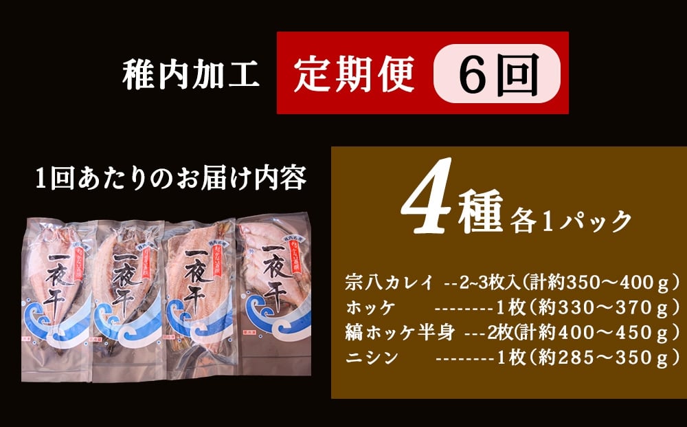 【定期便6ヶ月】一夜干し 4種セット ~ ほっけ 縞ほっけ 鰊 宗八かれい【北海道の居酒屋気分】