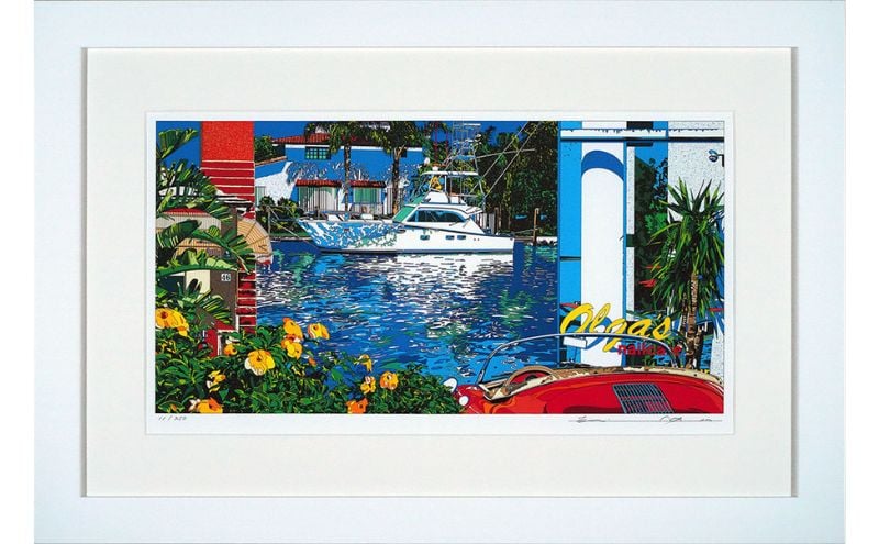 - 版画 鈴木英人版画 「マイアミの碧い運河2」 フレーム付き 絵画 アート 絵 芸術 インテリア サイン入り アメリカ マイアミ 運河 逗子市 神奈川県 [№5875-0799]