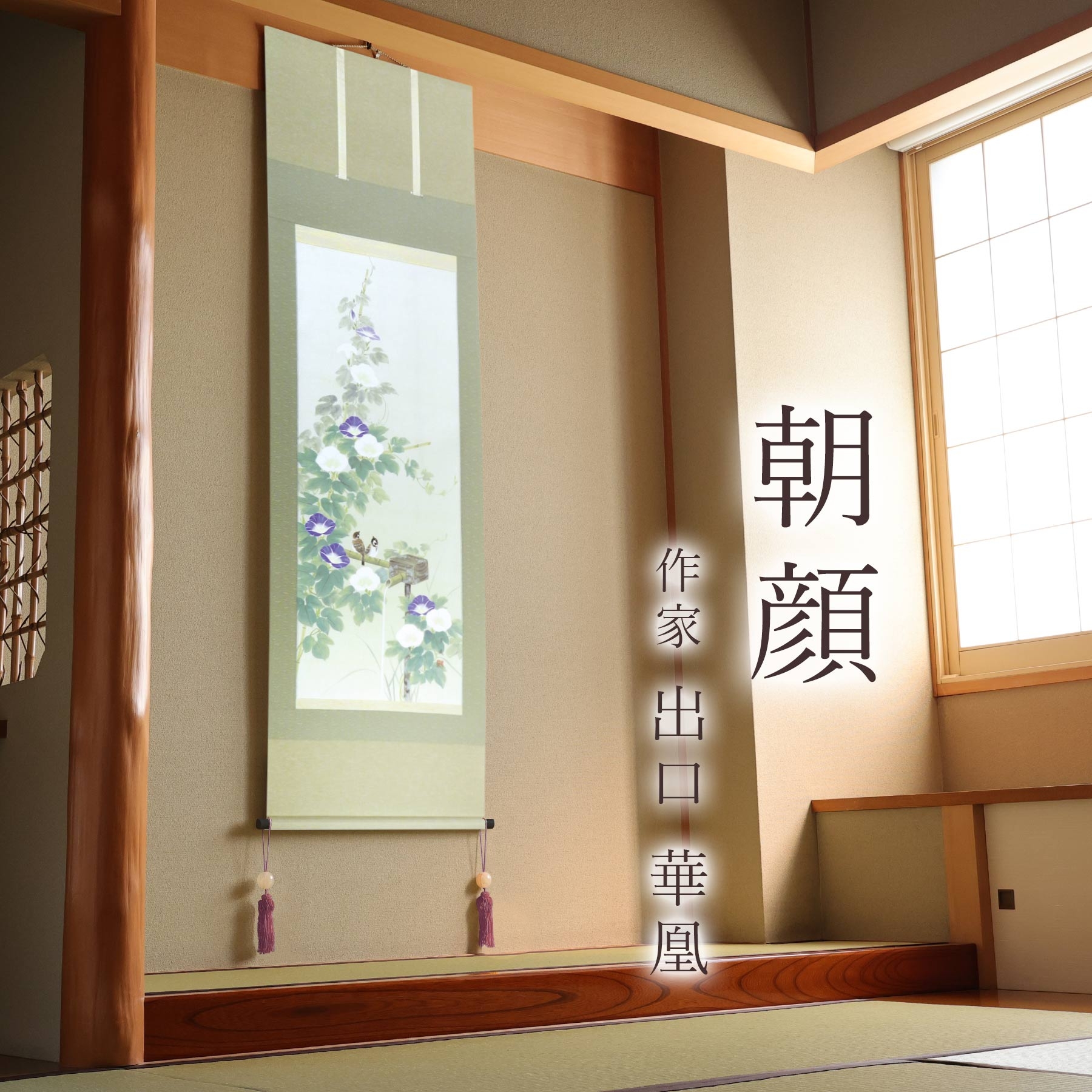 - 掛け軸「朝顔」 出口華凰 尺五立 サイズ:54.5×190cm 桐箱付 掛け軸 表装 床の間