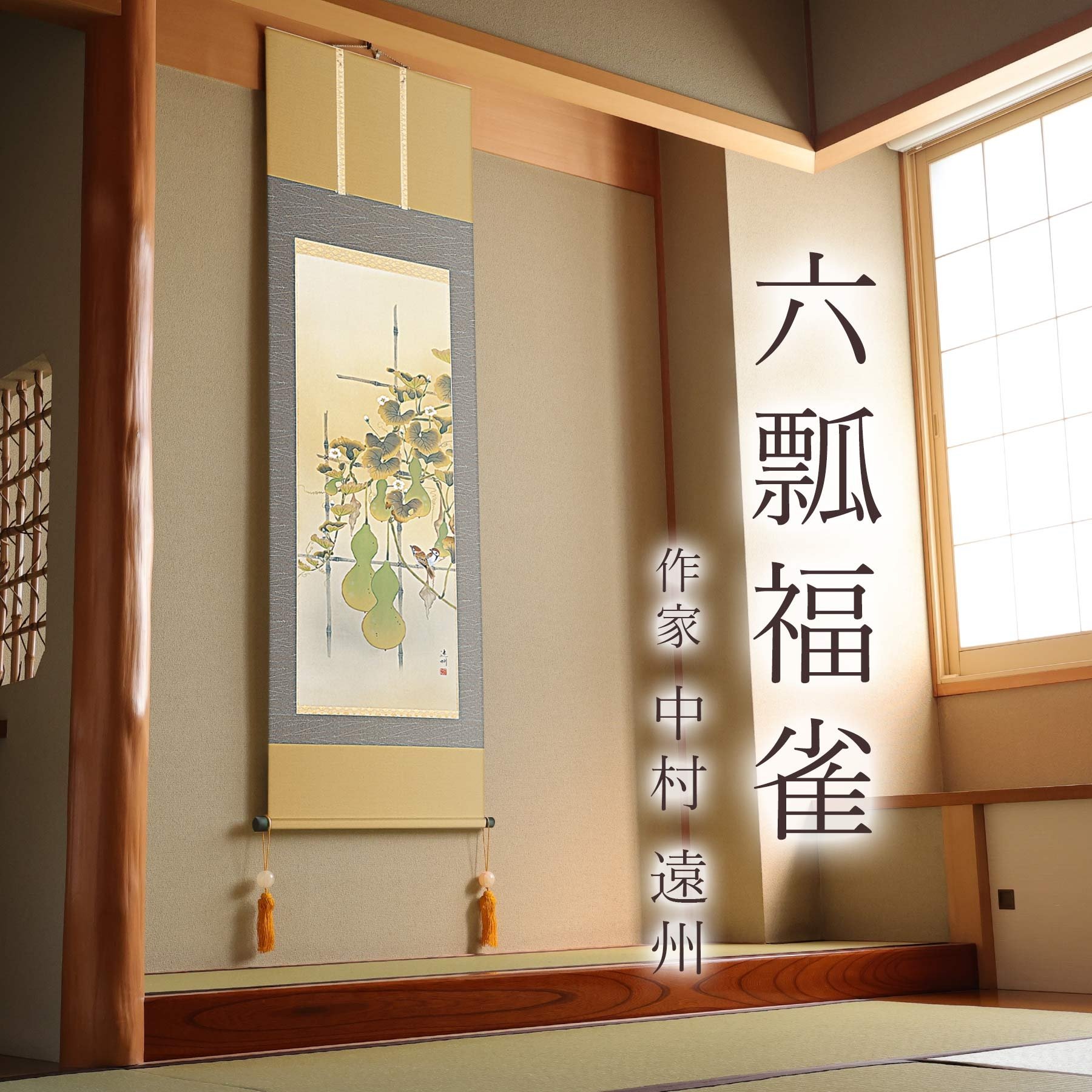 - 掛け軸「六瓢福雀」 中村遠州 尺五立 サイズ:54.5×190cm 桐箱付 掛け軸 表装 床の間