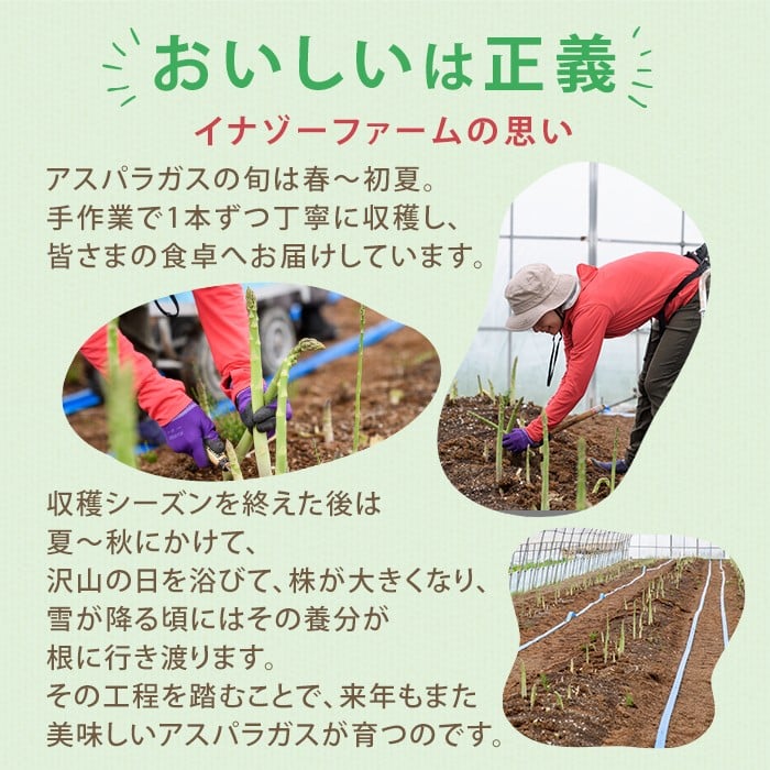 - <季節限定>有機JASアスパラガス(約1kg・サイズ混合おまかせ) 【先行予約受付中・2026年4月中旬から順次発送】期間限定 アスパラ グリーンアスパラ 旬 野菜 【イナゾーファーム】【B7099】