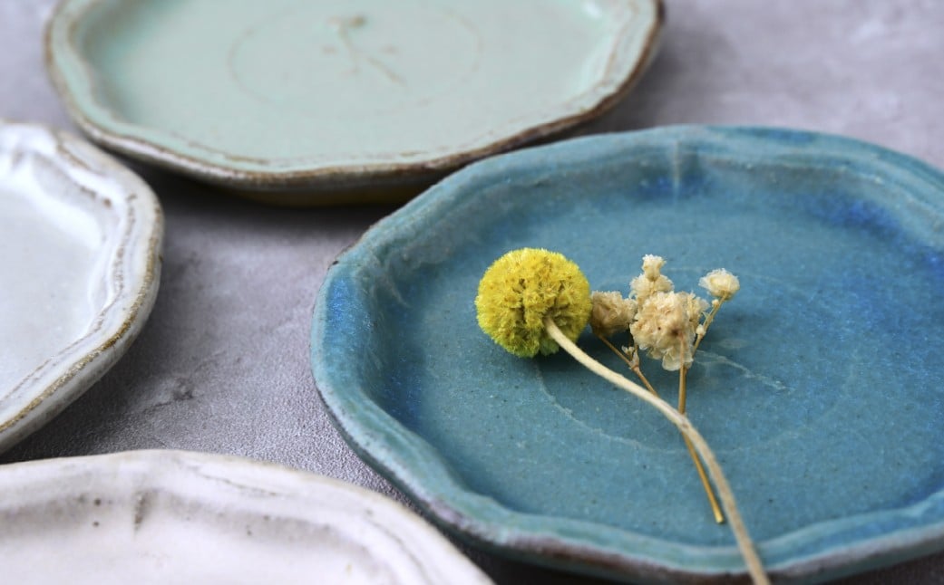 - 工房とめ バラ小皿 9.5cm 4枚セット | 食器 皿 小皿 丸皿 器 うつわ 益子焼 陶芸 陶器 栃木県 茂木町