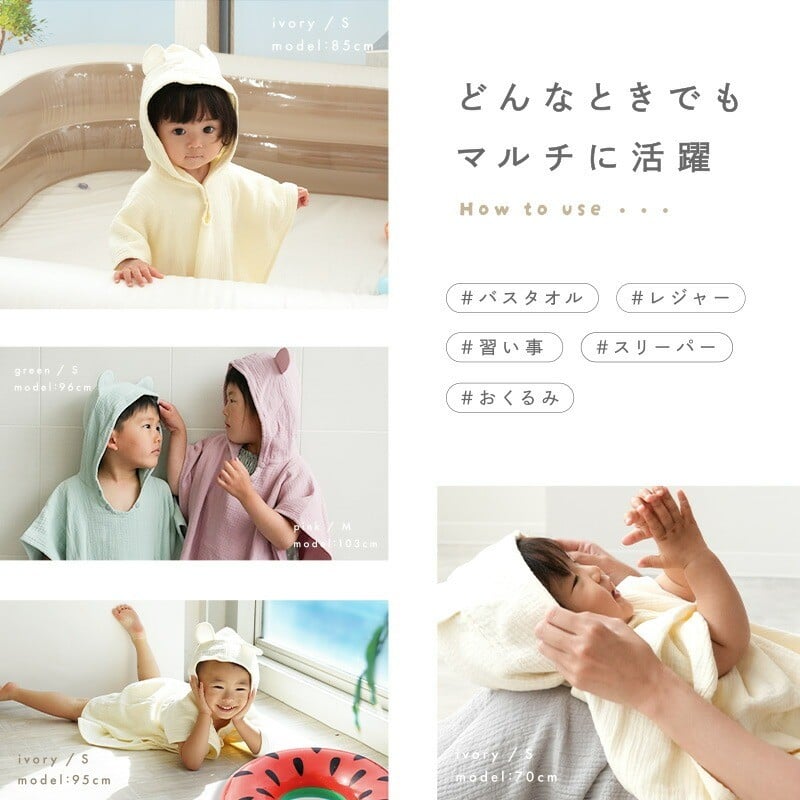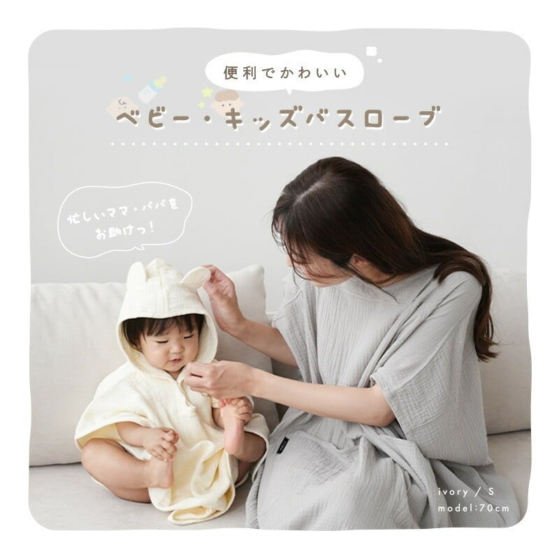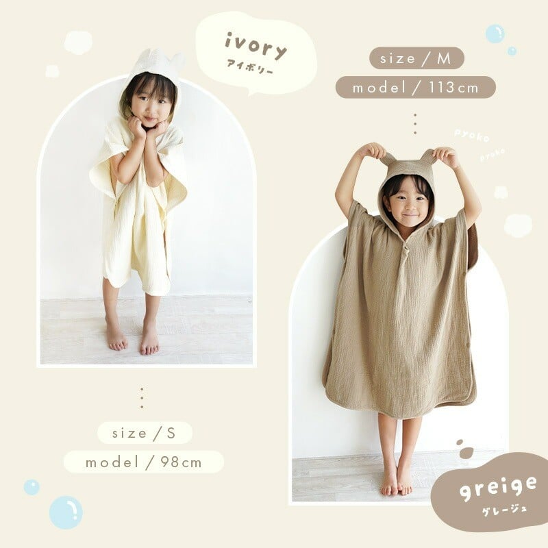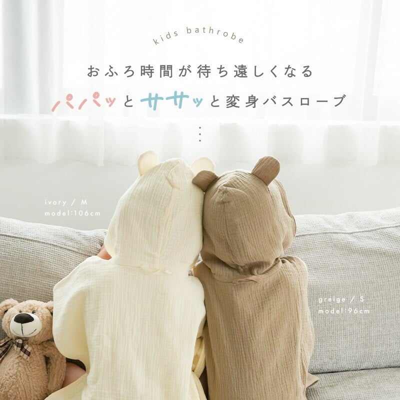 バスローブ くま耳付き 4重ガーゼ ベビーバスローブ 【サイズ・カラー選択可】〈 アットライズ 〉 ポンチョ バスローブ ベビー キッズ バスタオル フード付き バスポンチョ ワンオペ キッズバスローブ コットン 綿100% ガーゼ 吸水 子供用 パジャマ 赤ちゃん お風呂 タオル 奈良県 奈良市