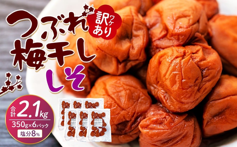 訳ありつぶれ梅干し しそ 合計2.1kg (350g×6パック) 塩分 8%