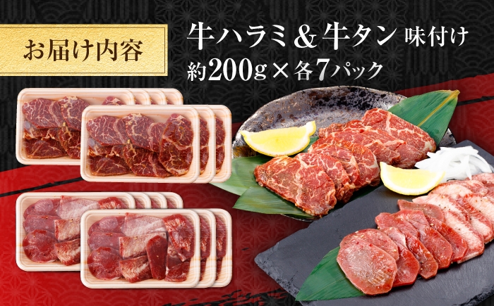 牛ハラミ & 牛タン 味付け 各種約200g×7 総計約2.8kg / 訳あり 小分け 柔らかい 一口サイズ 【(有)山重食肉】 [ATAP167]