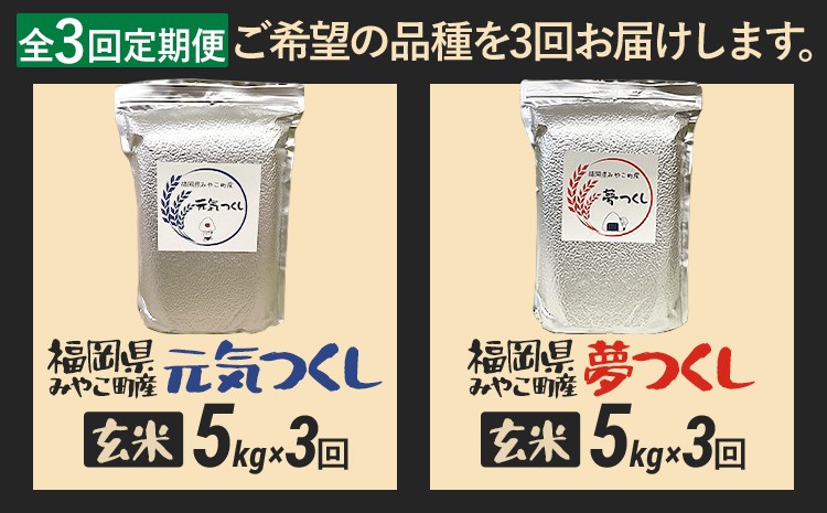 定期便 米 3回 令和7年産 選べる 元気つくし 夢つくし(玄米) 5kg 定期便 チャック付き チャック 防虫 ごはん おにぎり おやつ 福岡県 みやこ町産 福岡 九州 グルメ お取り寄せ