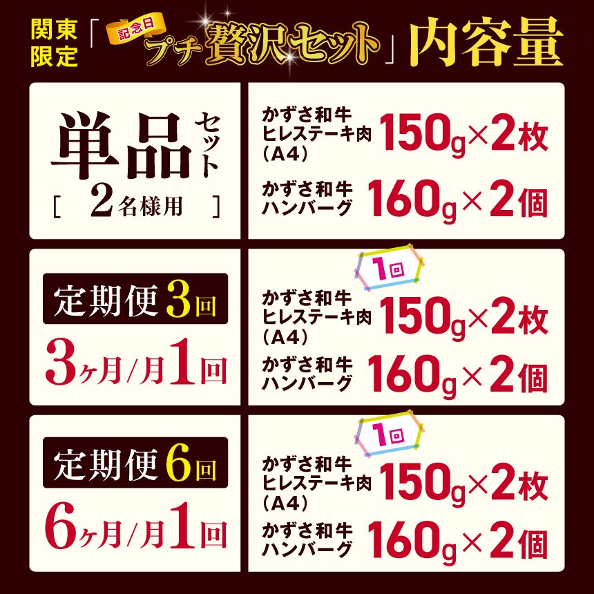 【選べる回数 1回・3回・6回】プチ贅沢セット ( かずさ和牛 ハンバーグ 160g×2個 + A4ランク かずさ和牛 ヒレステーキ 肉 150g×2枚 )関東限定 | かずさ和牛工房 国産 和牛 ジャパンフードセレクション 金賞 人気店 牛肉 にく 上総和牛 国産 ご褒美 食べ比べ 詰合せ プレゼント オススメ 千葉県 君津市 きみつ 【KH-2】【KWH】
