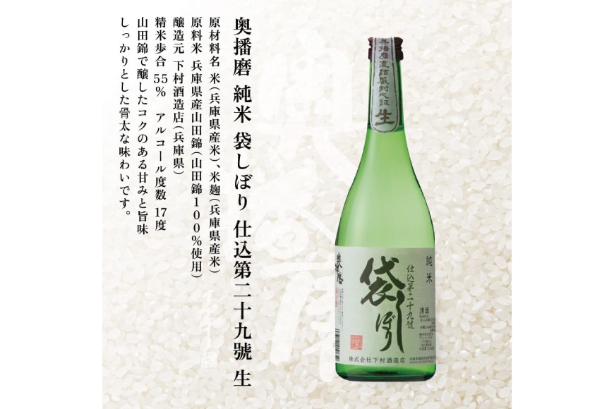 奥播磨 純米 袋しぼり 仕込第二十九號 生 720ml 下村酒造店 加東市産山田錦使用 化粧箱入 [ 日本酒 酒 お酒 純米酒 四合瓶 贈答品 骨太 ] アルコール 家飲み 宅飲み 晩酌