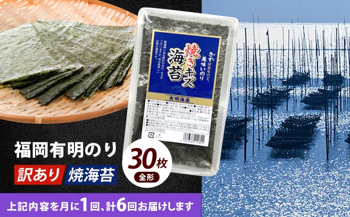 - 【全6回定期便】【訳あり】福岡有明のり 焼海苔 全形30枚《築上町》【株式会社木村食品(千代海苔株式会社)】海苔 のり ノリ おかず ごはん[ABEI025]