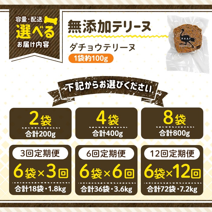 - a1059 《容量・配送が選べる》<保存料・着色料 不使用>愛犬用無添加ダチョウテリーヌ(2袋・4袋・8袋・定期便)【Nフードサービス】姶良市 ダチョウ テリーヌ 犬 ドッグ ペット フード エサ おやつ ごはん ご飯 間食 ご褒美 ペット関係