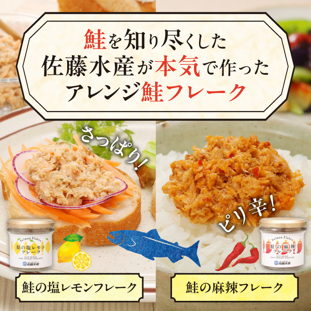 - 【ふるさと納税】《レビューキャンペーン》佐藤水産 鮭の塩レモン味フレーク 鮭の麻辣フレーク 【 選べる 容量 】90g 3本 6本 12本 セット 北海道産 鮭 鮭フレーク さけ フレーク レモン 塩レモン 麻辣 ピリ辛 旨辛 山椒 爽やか 惣菜 おかず ふりかけ 北海道 石狩市