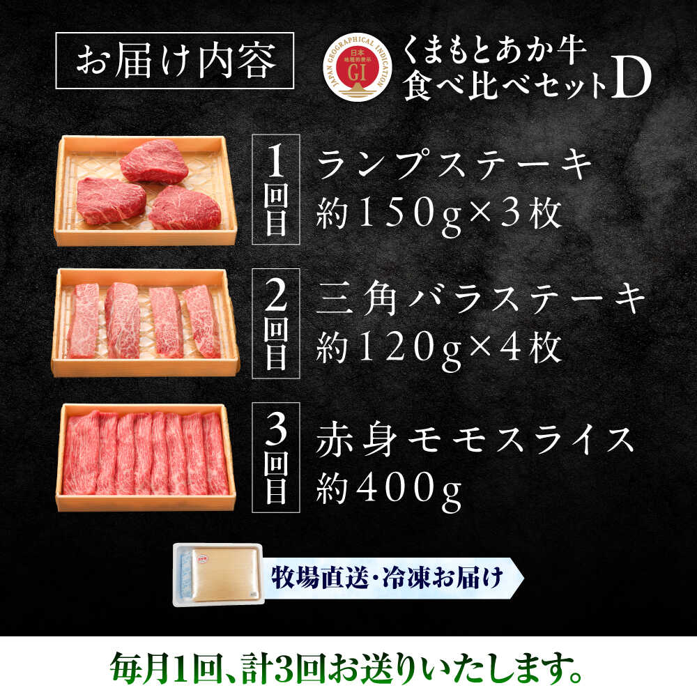 - 【ふるさと納税】【全3回定期便】【GI認証】くまもとあか牛 食べ比べD / 菊陽町 あかうし 熊本県 肉 にく niku ブランド 旨み くまもとあか牛 和牛 自社牧場 直接 最高 牛 牛肉 ぎゅうにく ぎゅう肉 冷凍 国産 【有限会社 三協畜産】[BHAS029]