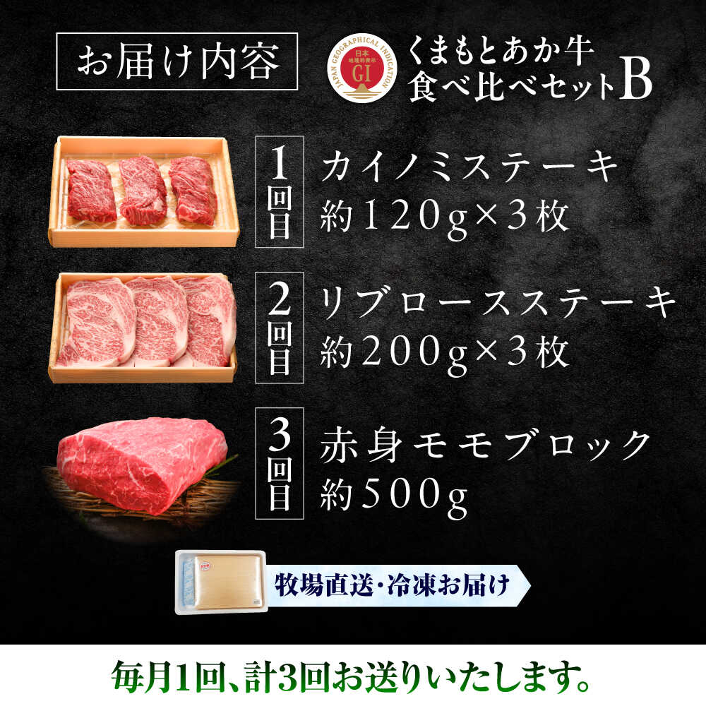 - 【ふるさと納税】【全3回定期便】【GI認証】くまもとあか牛 食べ比べB / 菊陽町 あかうし 熊本県 肉 にく niku ブランド 旨み くまもとあか牛 和牛 自社牧場 直接 最高 牛 牛肉 ぎゅうにく ぎゅう肉 冷凍 国産 【有限会社 三協畜産】[BHAS026]