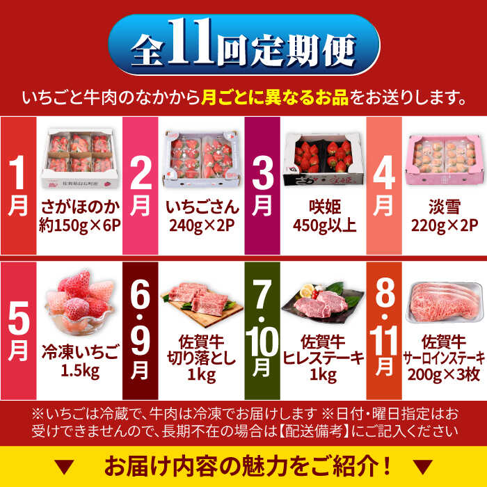 - 【ふるさと納税】【R8年1月以降発送】【全11回定期便】しろいしの味覚よくばりセット(赤白いちご5種と佐賀牛)/ いちご苺 果物 フルーツ 黒毛和牛 A4 A5 ブランド牛 佐賀県 白石町 [IZZ030]