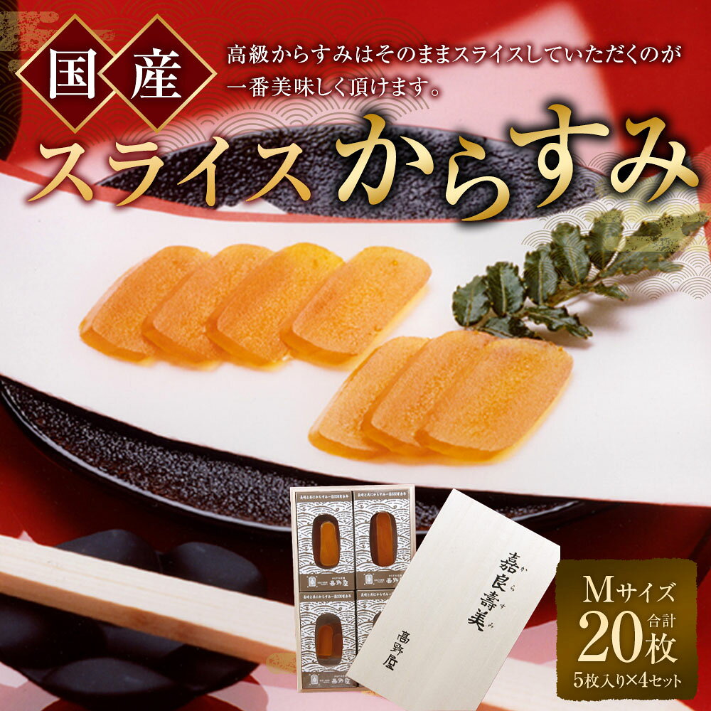 - 【ふるさと納税】国産 スライスからすみ M-4セット ( Mサイズ 5枚入り×4 ) からすみ 珍味 魚卵 高級からすみ 料理 長崎市