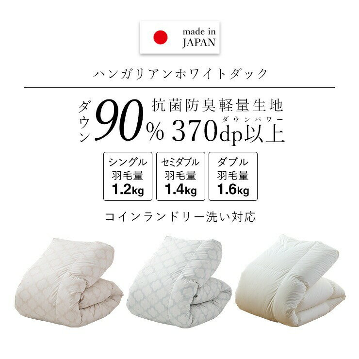 - 【ふるさと納税】【増量タイプ】 羽毛布団 掛け布団 ハンガリー ホワイトダック ダウン 90% DP370 洗える コインランドリー 日本製 充てん量 シングル 1.2kg セミダブル 1.4kg ダブル 1.6kg 立体キルト ダウンプルーフ 抗菌 防臭 ダニプルーフ 江崎ふとん 久留米市 送料無料