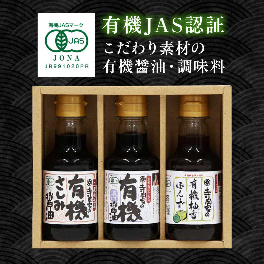 【ふるさと納税】【楽天限定/スピード配送/選べる配送月】調味料 寺岡家の有機醤油・調味料詰合せ 150ml×3本 調味料 セット しょうゆ ポン酢 刺身 有機大豆 有機小麦 生(き)醤油 醤油 ギフト 贈り物 福山市/寺岡有機醸造株式会社[BADT003]