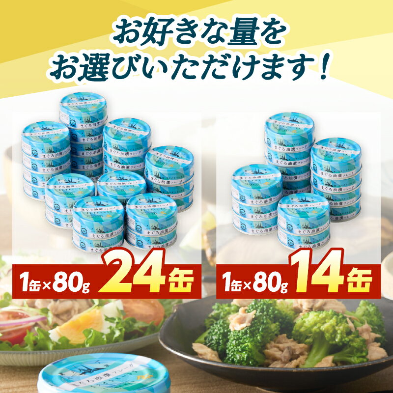 - 【ふるさと納税】 【選べる内容量】 ツナ 缶詰 ツナ缶 きはだまぐろ 80g 14缶 24缶 常温保存 非常食 アウトドア キャンプ おつまみ 焼津 8000円 12000円 a08-010 a12-276