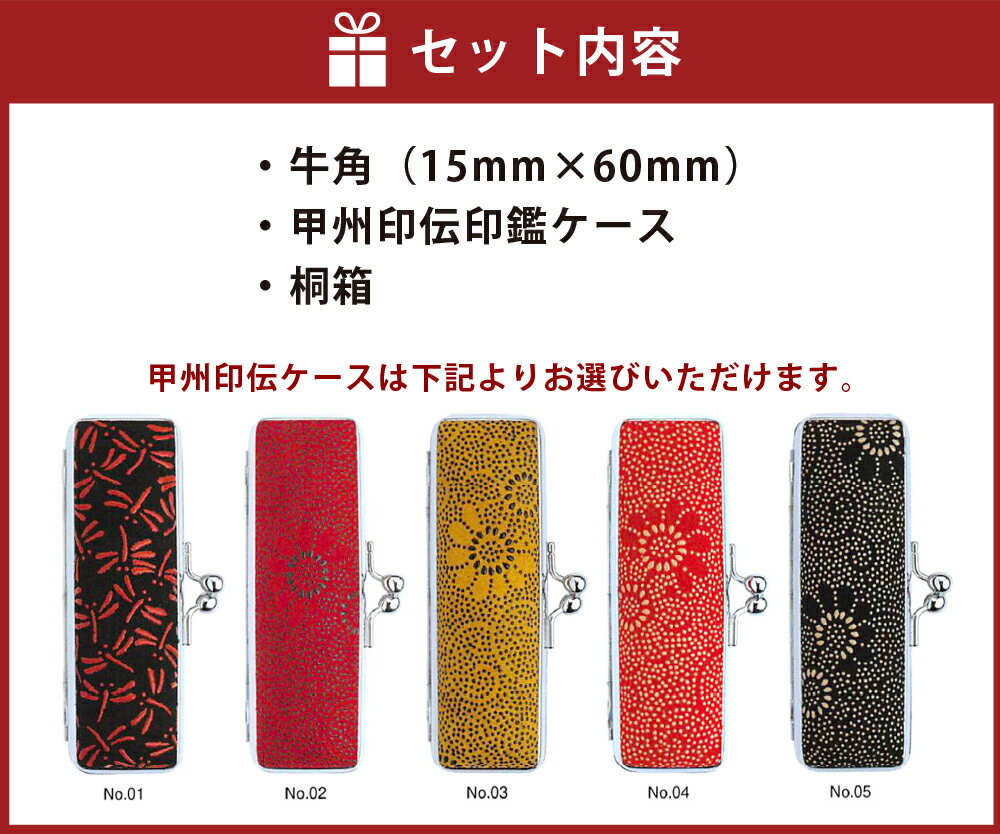【ふるさと納税】純白牛角印鑑15mm 甲州印伝ケース・桐箱付 雑貨 日用品 牛角 うしのつの ハンコ 判子 印鑑 実印 オーダーメイド 山梨県 身延町