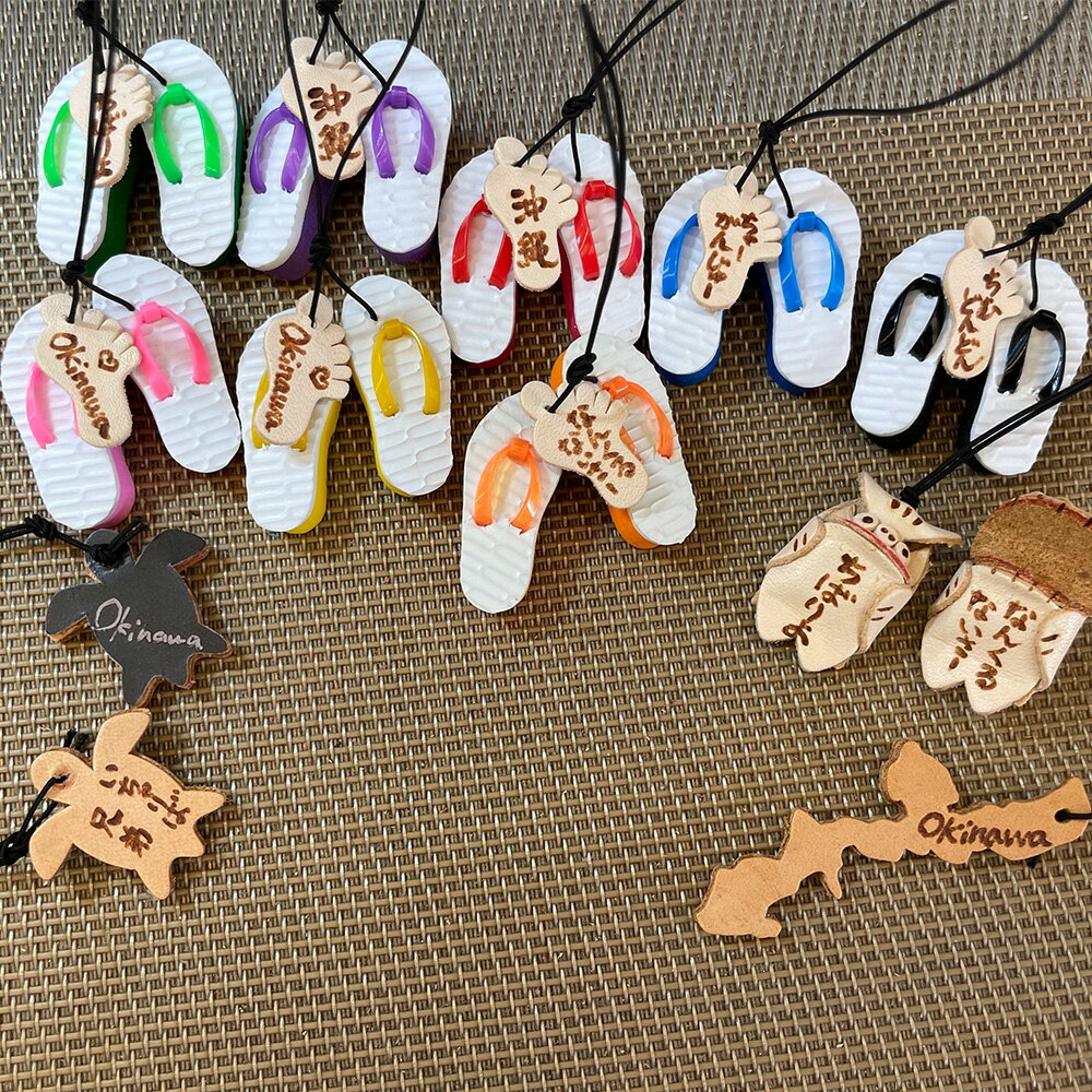 - 【ふるさと納税】島ぞうり2個+革シーサー+革太鼓+革カメ+沖縄地図6点ストラップセット