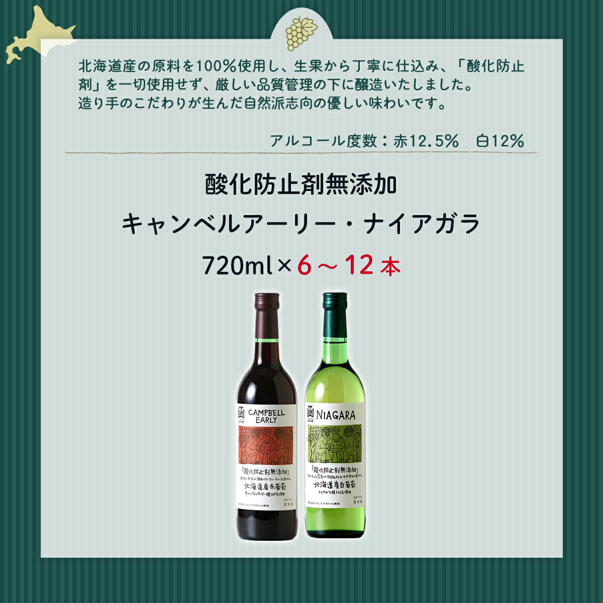 【ふるさと納税】酸化防止剤無添加ワイン 飲み比べセット (キャンベルアーリー・ナイアガラ)選べる本数(6本/12本)【ふるさと納税 人気 おすすめ ランキング ワイン わいん 赤ワイン 白ワイン お酒 おさけ 酒 アルコール ギフト プレゼント 北海道 七飯町 送料無料】