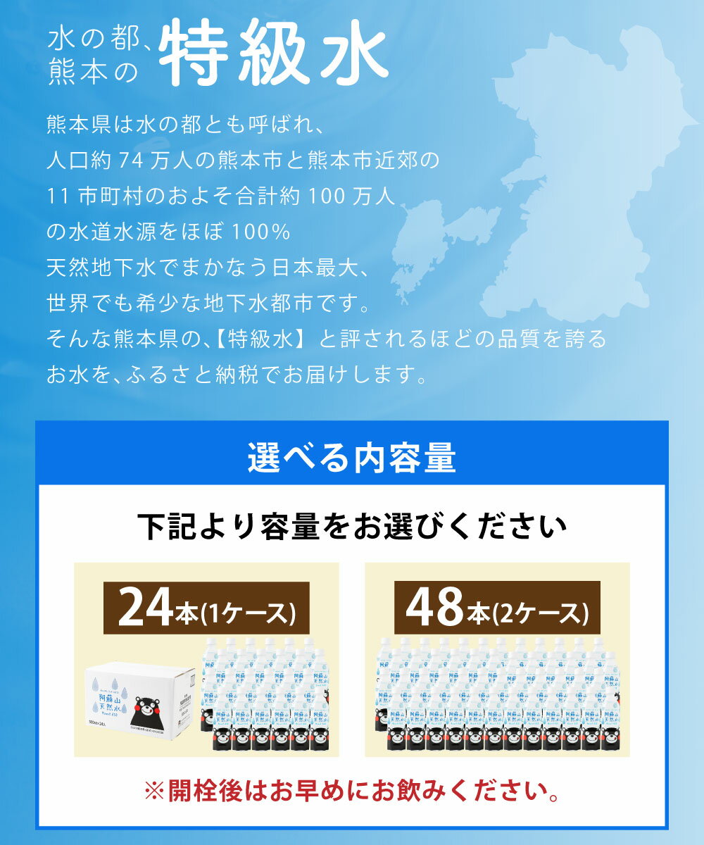 【ふるさと納税】〈選べる容量〉熊本のおいしいお水 阿蘇山天然水 500ml×24本(1ケース)、 500ml×48本(2ケース) 阿蘇 阿蘇山 カルデラ 天然水 天然 お水 水 地下水 ミネラル ミネラルウォーター 飲料 飲料水 ペットボトル HACCP 九州 熊本県 送料無料
