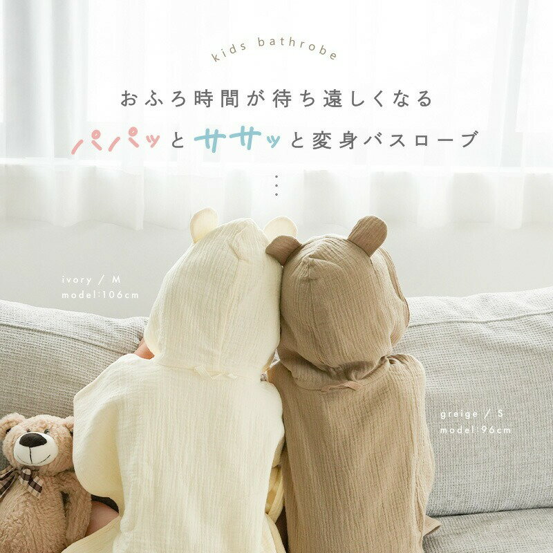 - 【ふるさと納税】くま耳付き 4重ガーゼ ベビーバスローブ 〈 アットライズ 〉 ポンチョ バスローブ ベビー キッズ バスタオル フード付き バスポンチョ ワンオペ キッズバスローブ コットン 綿100% ガーゼ 吸水 子供用 パジャマ 赤ちゃん お風呂 タオル 奈良県 奈良市