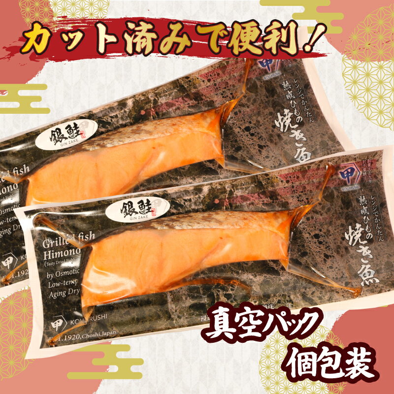 - 【ふるさと納税】 熟成ひもの 焼き銀鮭 【選べる容量】 5~10パック 無添加 添加物不使用 干物 ひもの 熟成 鮭 さけ しゃけ 塩鮭 塩さけ 銀ざけ 銀さけ 銀しゃけ 焼きさけ 焼きしゃけ 調理済み 簡単 調理 電子レンジ 湯煎 ふるさと納税 送料無料 千葉県 銚子市 甲印小西商店