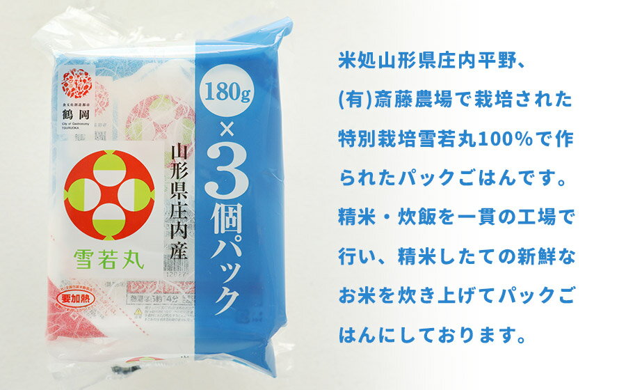 - 【ふるさと納税】斎藤農場の雪若丸 パックごはん 180g×24食 無菌包装米飯 特別栽培米 K-740・K-761