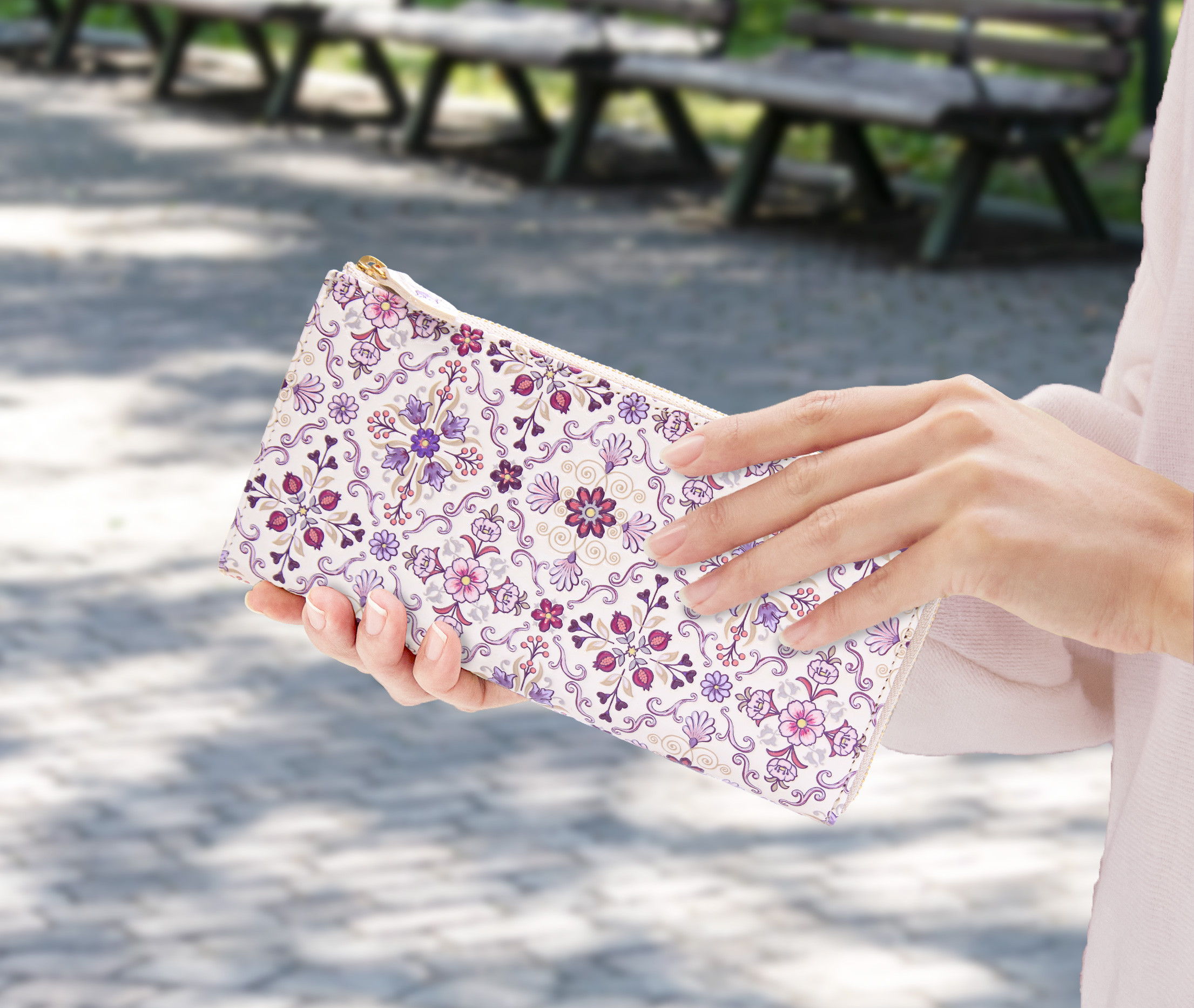 【浅草文庫】L字長財布 オリエント柄(カラー:ピンク)