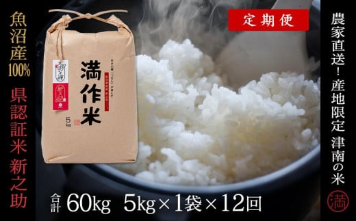 【 定期便 12ヶ月 】 米 5kg × 12回 令和7年産 新米 魚沼産 新之助 県認証米 特別栽培米 | しんのすけ お米 おこめ こめ コメ 白米 精米 おすすめ 新潟県 津南町
