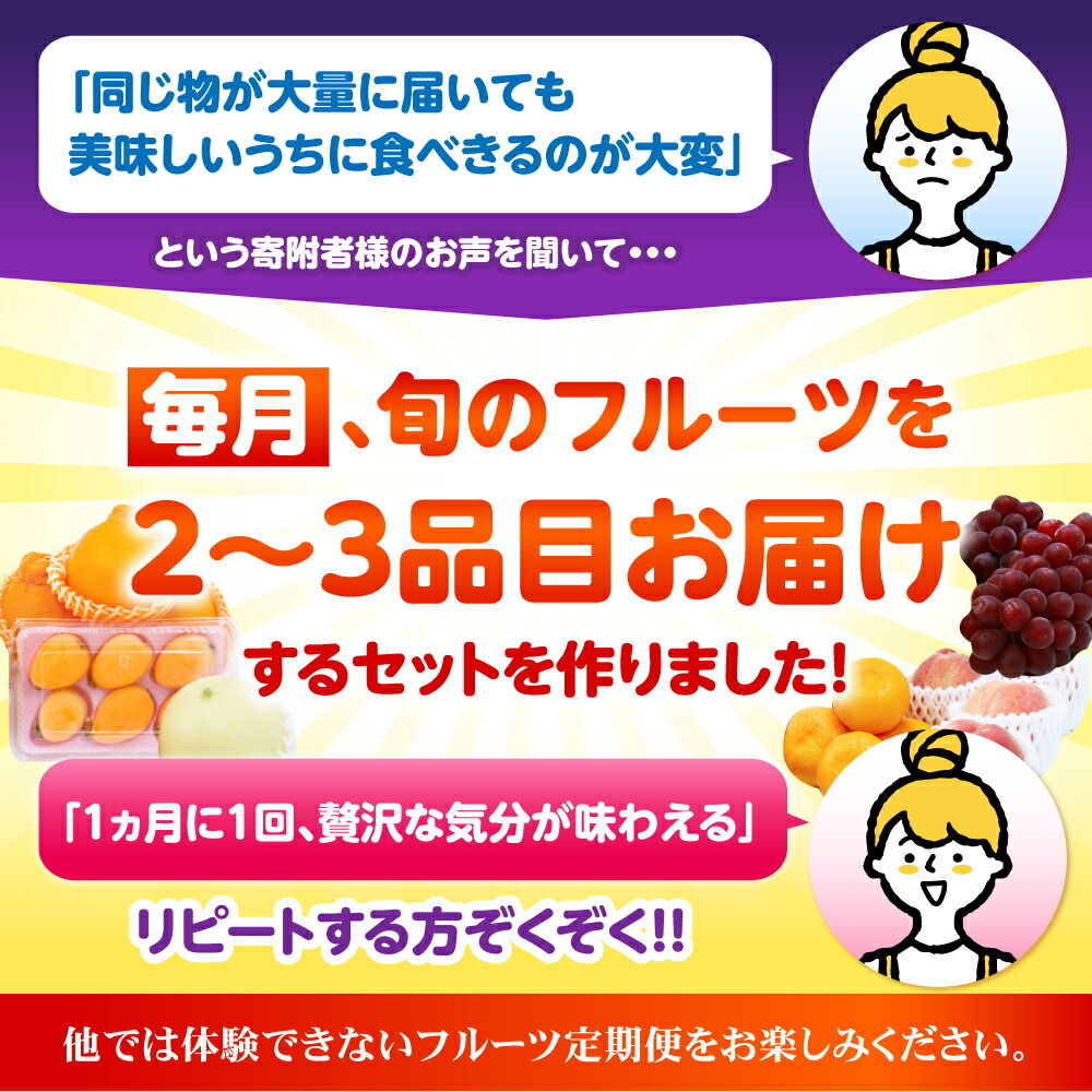 - 【12回定期便】フルーツ定期便 旬の果物をお任せで2~3品目お届け(2~3品目×12回)季節の果物 詰め合わせ 果物 セット / 定期便 フルーツ 果物 春フルーツ 夏フルーツ 秋フルーツ 冬フルーツ / 南島原市 / 吉岡青果 [SCZ014]