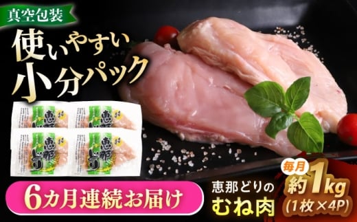 【6回定期便】 【冷凍】 恵那どり むね肉 4枚セット 1kg前後 瑞浪市 / トーノーデリカ 肉 お肉 とりにく 鶏肉 鳥肉 国産 冷凍 小分け むね肉 鶏むね肉 鶏ムネ肉 ムネ肉 鶏胸肉 胸肉 鶏肉 [AZBJ014]