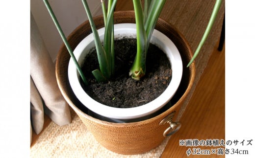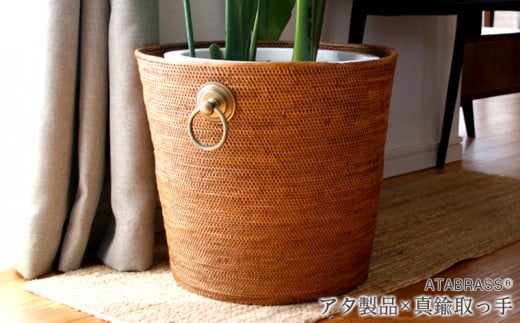 BAX-410SIN2 アタブラス バケツ型バスケット(φ39×H35) アタ 真鍮 取っ手 ランドリー ボックス 洗濯 雑貨 鉢植え 小物入れ バスタオル ブランケット 収納 かご 箱 インテリア グッズ オリジナル おすすめ 手作り プレゼント ギフト 数量限定 バリ島 アジアン アタブラス ATABRASS アジア SOA