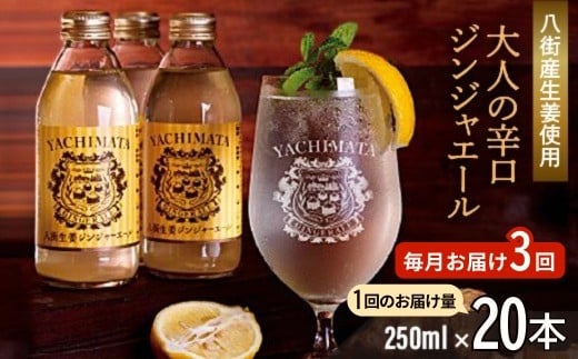 - 【毎月お届け3回】 八街生姜ジンジャーエール ( 250ml × 20本 × 3回 ) ジンジャーエール 生姜 八街 定期便 ジュース ジンジャー 瓶 ビン セット