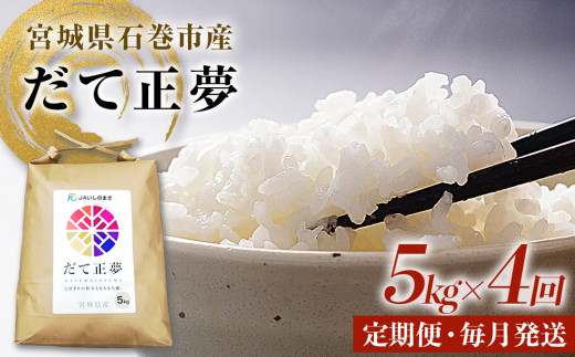 - 米 定期便 20kg <定期便4回・毎月発送> 令和7年 銘柄 だて正夢 いしのまき産米 精米 5kg×4回 定期 国産米 白米 お米 ごはん ブランド米 もちもち 食感 甘い 5キロ 4回配送 20キロ 家庭用 JAいしのまき 伊達正夢 宮城県 石巻 石巻市 送料無料