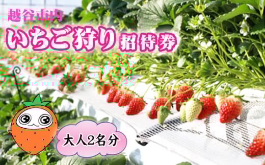- 越谷市内いちご狩り招待券(大人2名分) / いちご イチゴ 苺 いちご狩り イチゴ狩り 苺狩り チケット 利用券 体験 観光 旅行 家族 デート フルーツ 果物 新鮮 越谷産 観光農園 アクセス良 都心近く埼玉県 No.150