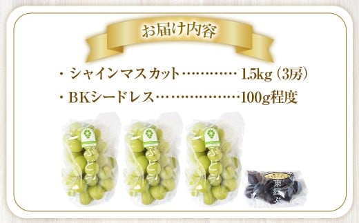 - 【先行予約】 朝採れ シャインマスカット (種なし) 1.5kg(3房) お試し用 朝採れ BKシードレス付き(100g程度) 【2026年8月下旬発送予定】 AS-7110