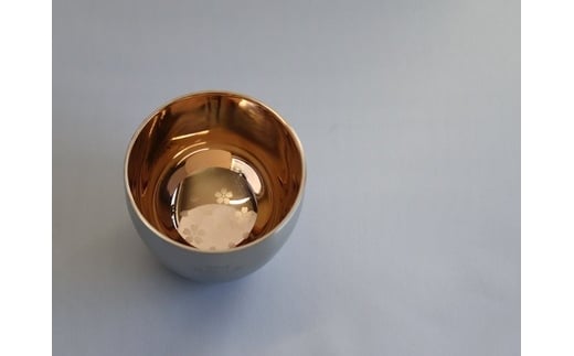 - 18-8ステンレス 二重構造 酒器 さくら ぐい呑み 内面ピンクゴールドメッキ FC010438