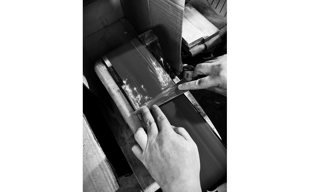 H30-59 兼広作 三層 三徳包丁【砂地加工】